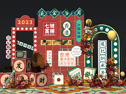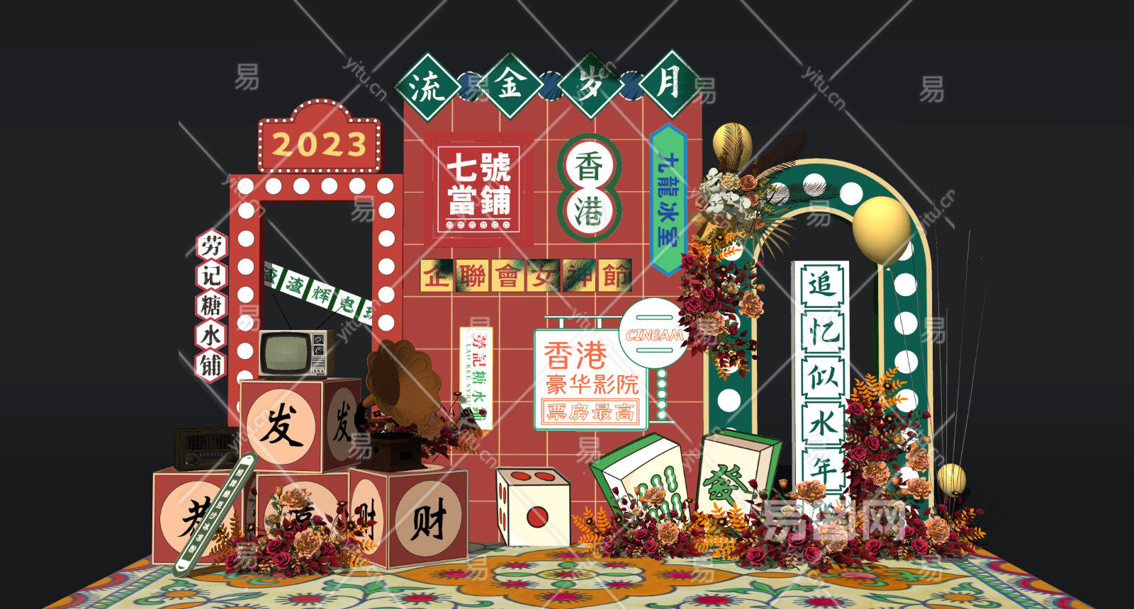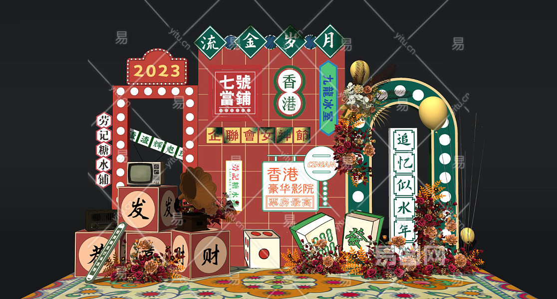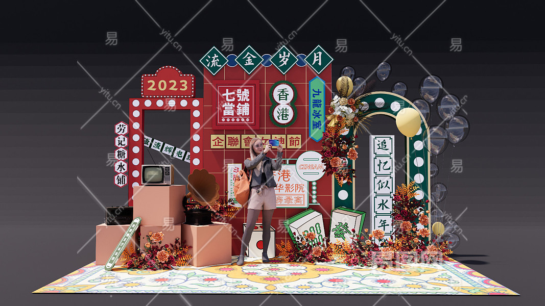 现代怀旧美陈 港风景墙 拍照舞台 纸板雕塑小品 网红打卡点 音乐节