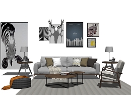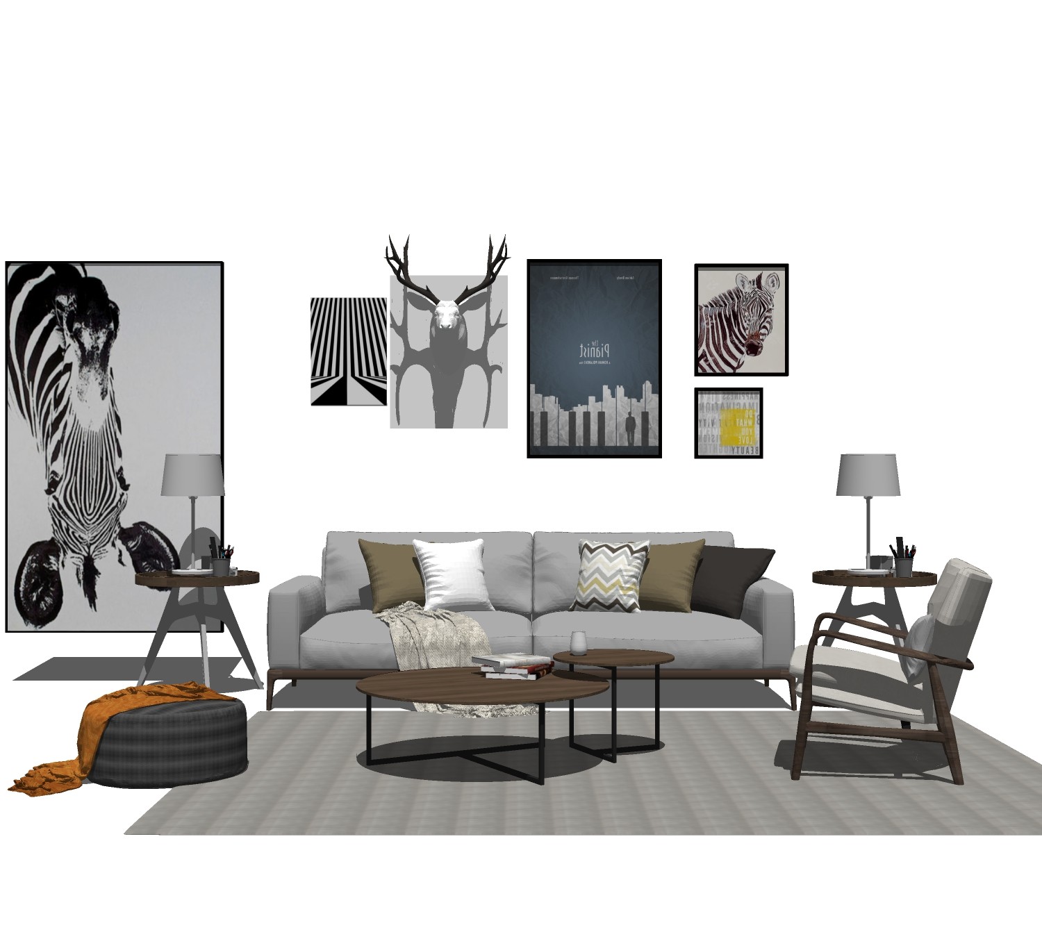 北欧布艺沙发组合su模型,沙发组合sketchup模型下载