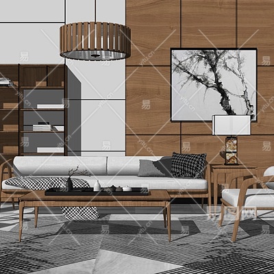 北欧实木组合沙发su模型