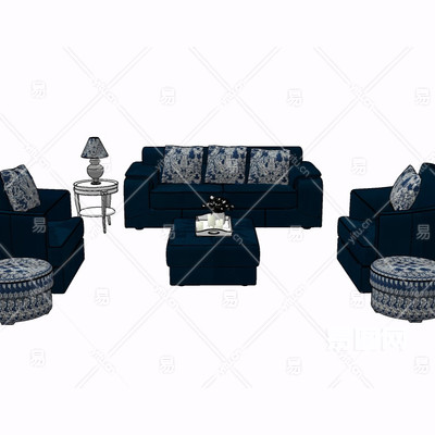 现代布艺组合沙发su模型