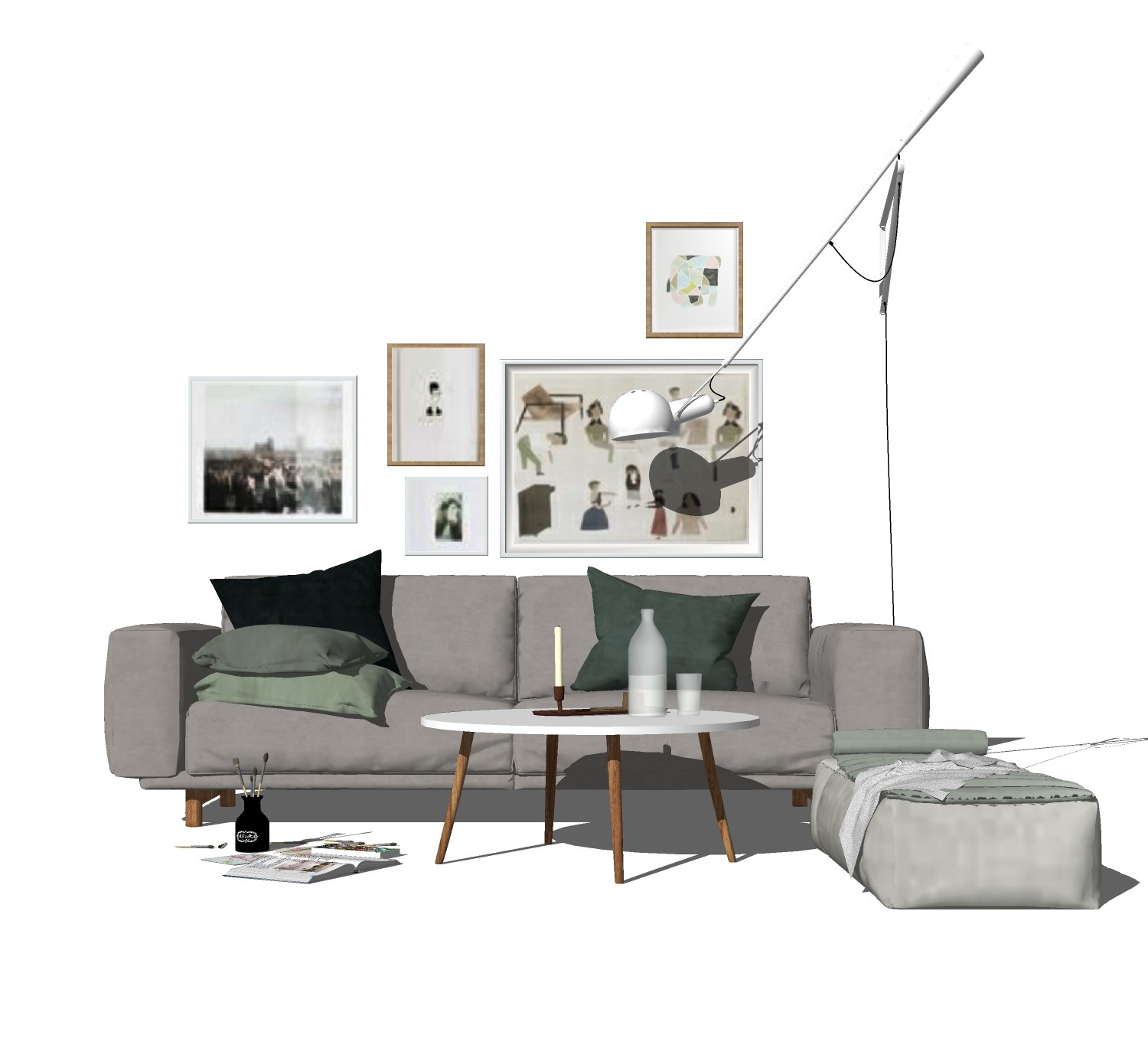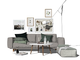 北欧布艺沙发组合su模型,沙发组合家具sketchup模型下载