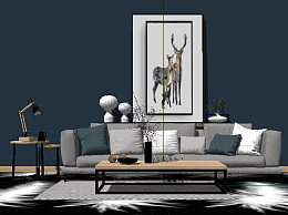 北欧布艺多人沙发组合su模型,沙发组合sketchup模型下载
