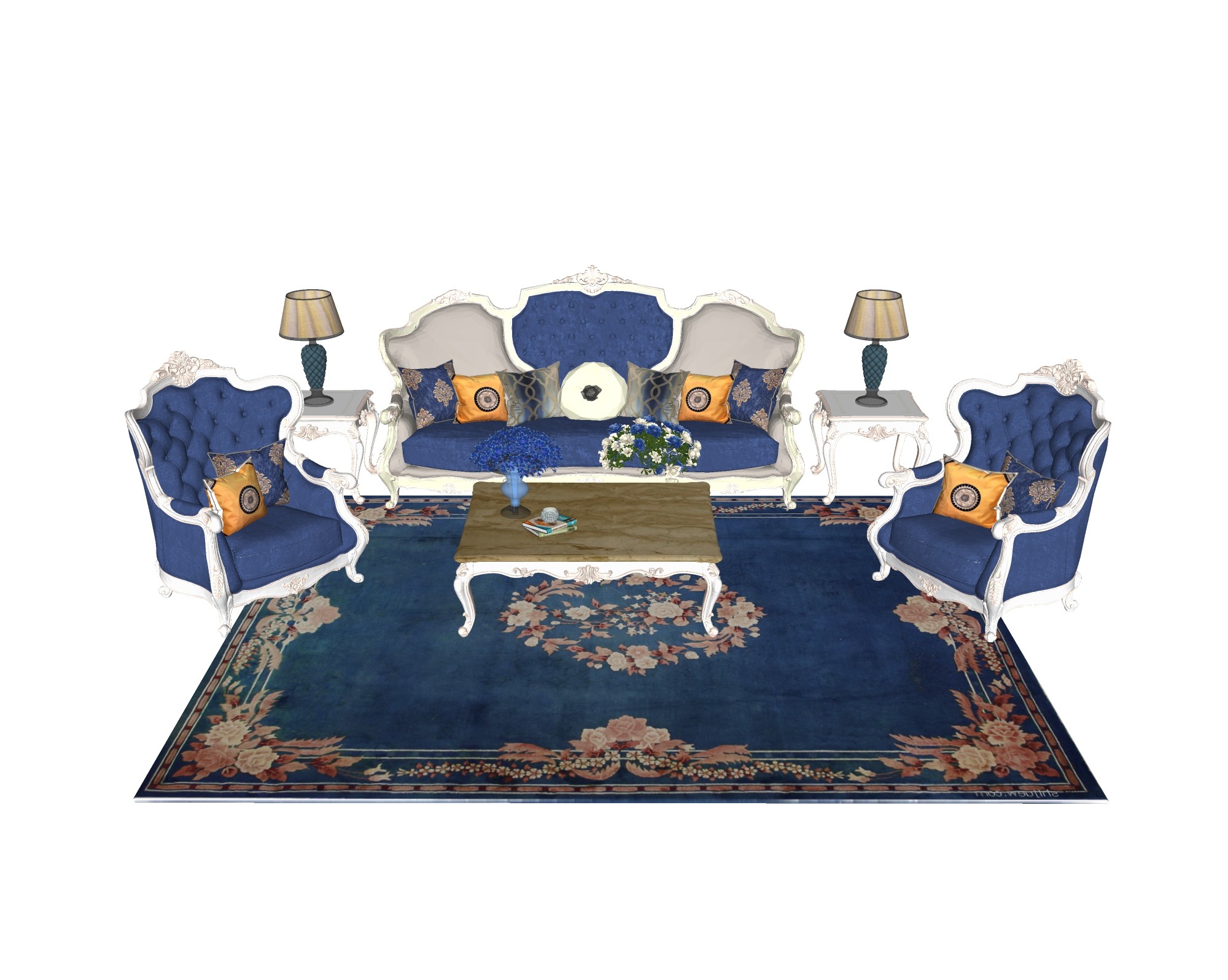 欧式沙发组合草图大师模型,欧式沙发组合sketchup模型下载