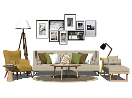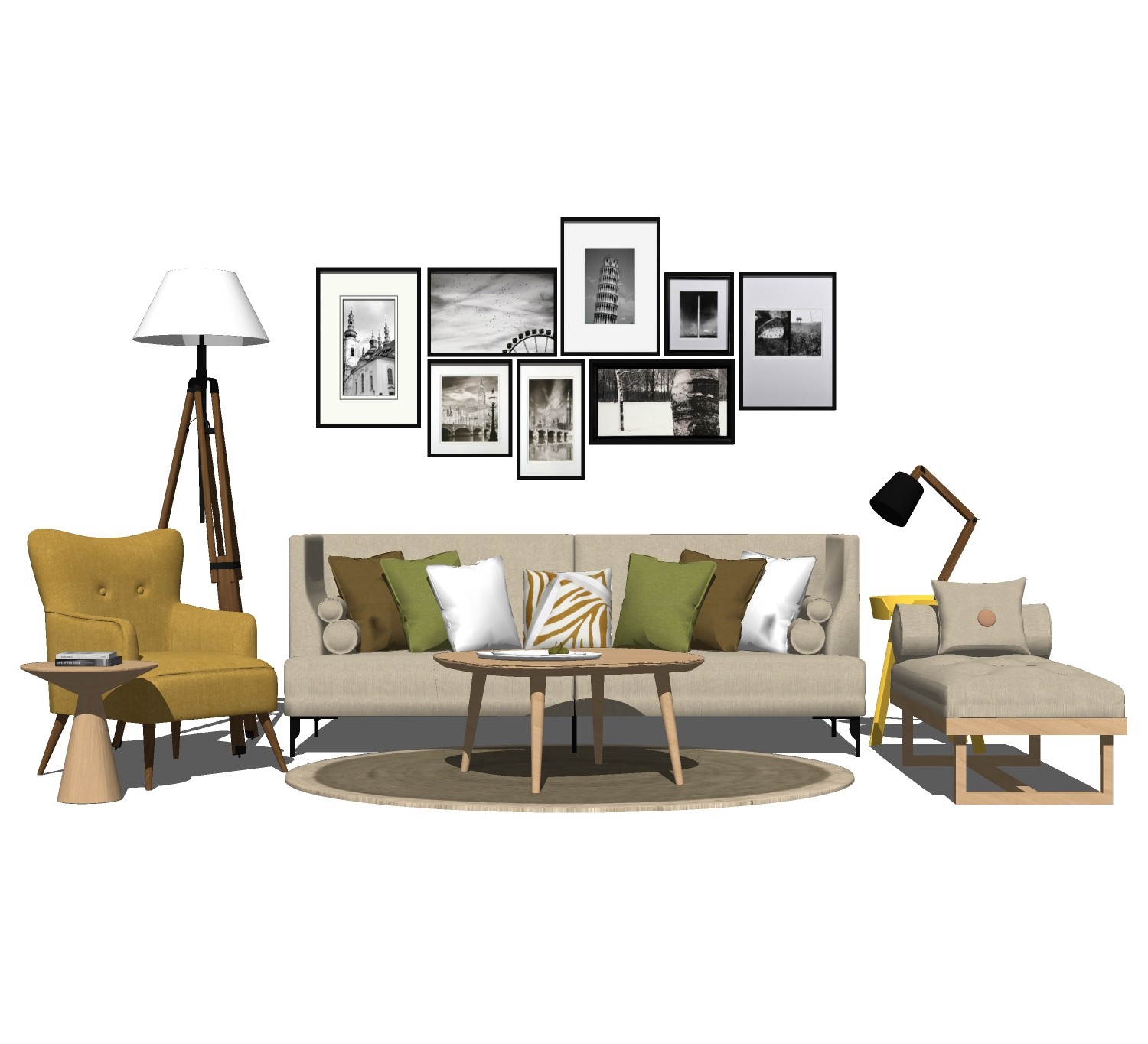 北欧沙发茶几组合免费su模型,沙发茶几组合skp模型下载