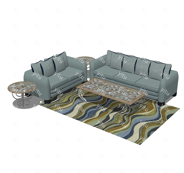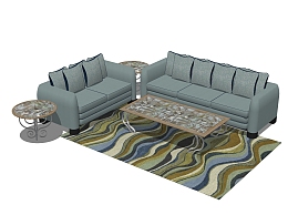 简欧布艺沙发茶几圆几组合免费su模型,组合沙发skb文件下载