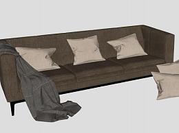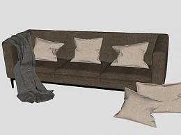 布艺沙发棕色三人沙发SU模型下载_sketchup草图大师SKP模型
