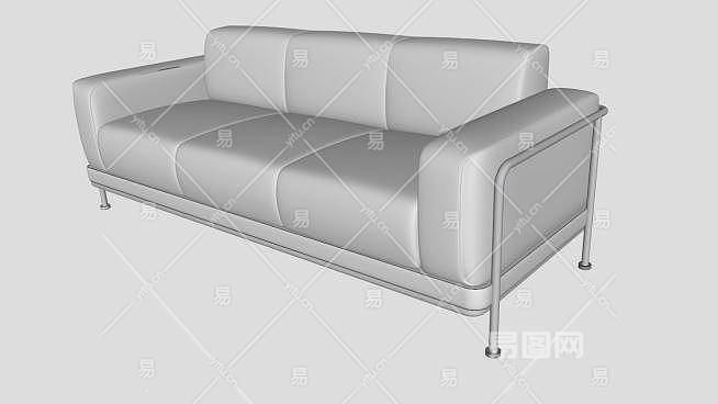 布艺沙发白色三人沙发卢格座椅SU模型下载_sketchup草图大师SKP模型