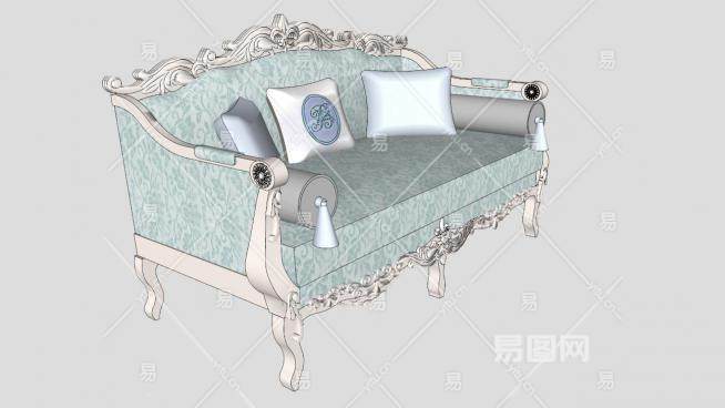 欧式沙发经典家具三人沙发SU模型下载_sketchup草图大师SKP模型