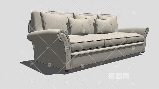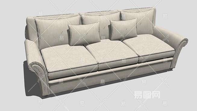 经典三人沙发三座椅沙发SU模型下载_sketchup草图大师SKP模型
