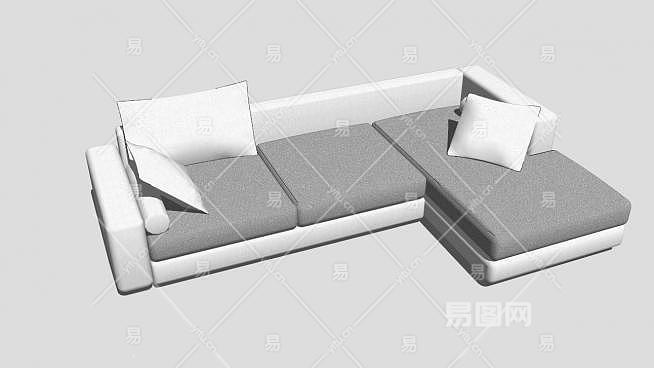 白色简约L形多人沙发SU模型下载_sketchup草图大师SKP模型