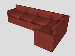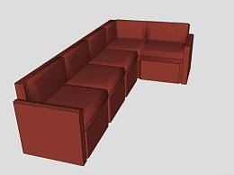 分离性沙发红色多人沙发SU模型下载_sketchup草图大师SKP模型
