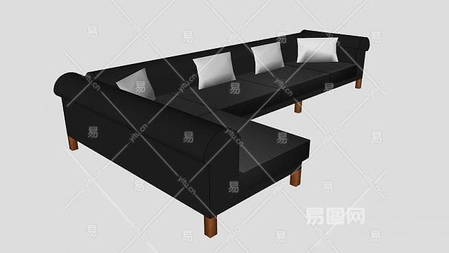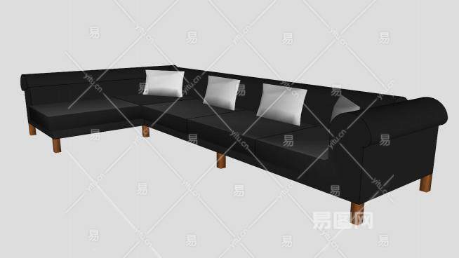 休闲沙发黑色多人沙发SU模型下载_sketchup草图大师SKP模型