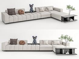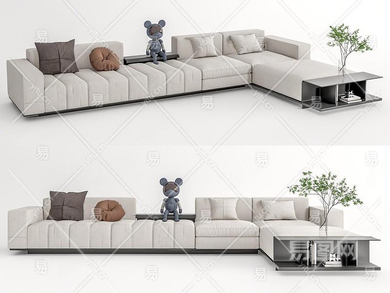 现代多人沙发 转角沙发 雕塑摆件 绿植花瓶