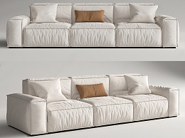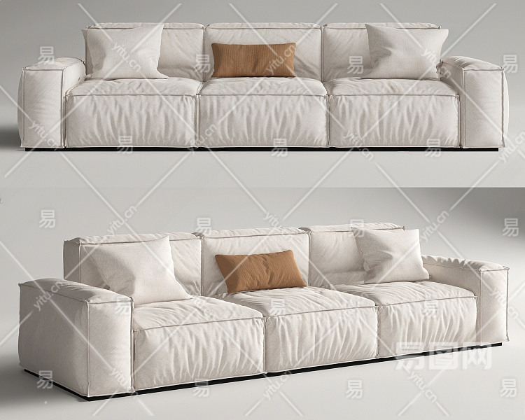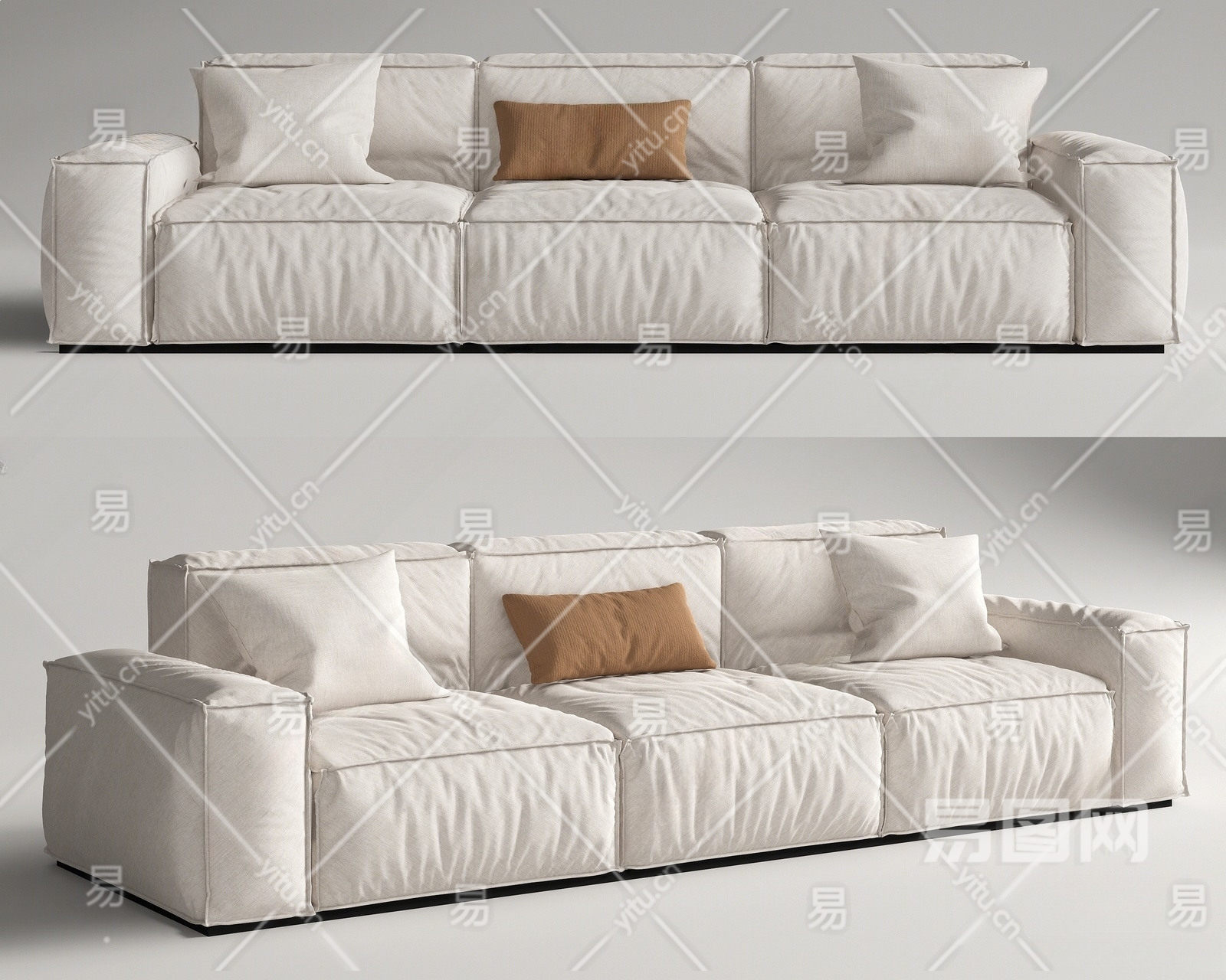 BONALDO现代奶油色豆腐块多人沙发 三人沙发 非转角