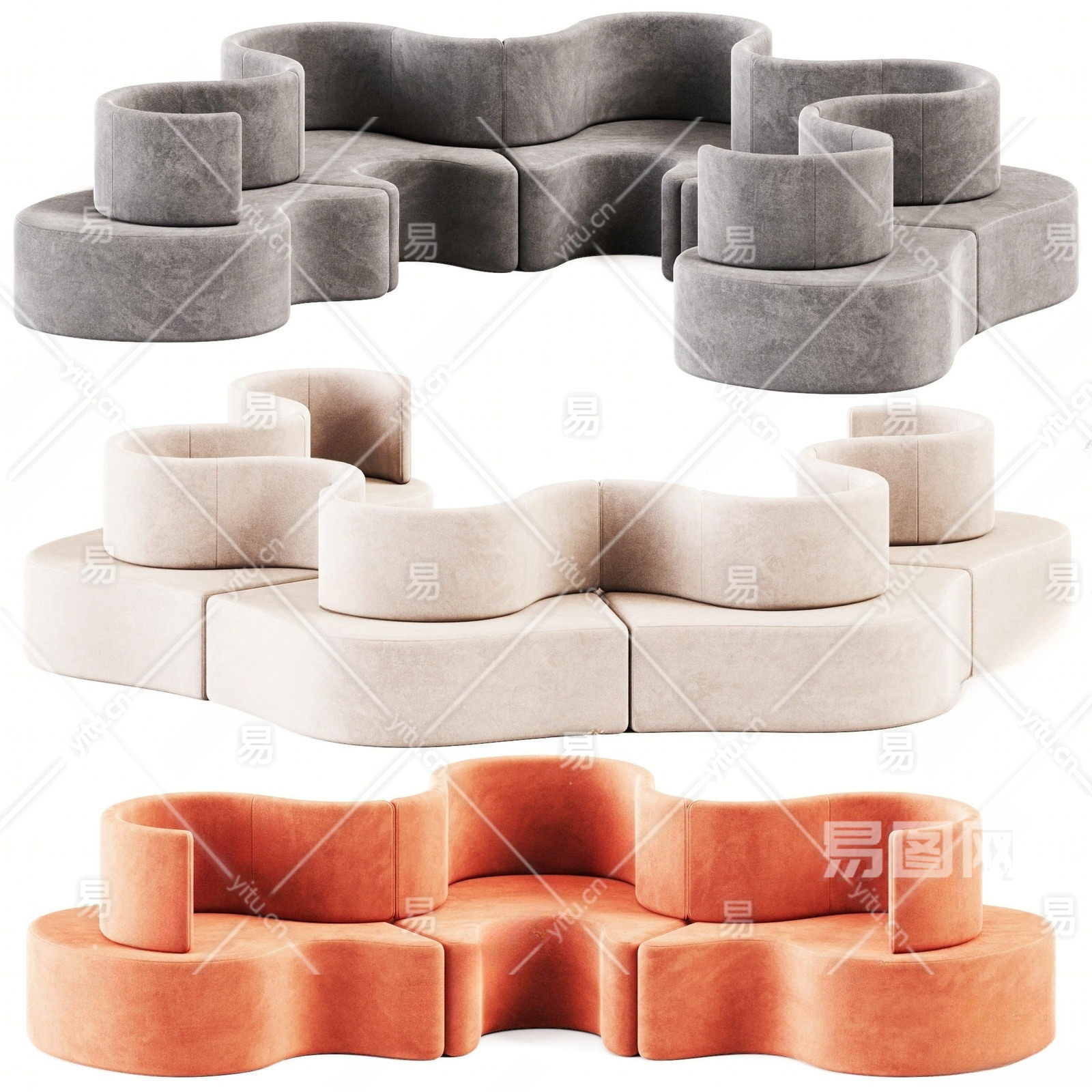 现代异形沙发 弧形沙发 多人沙发 布艺 异形