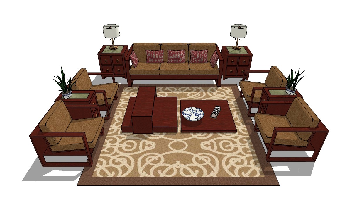 新中式多人沙发草图大师模型,多人沙发sketchup模型下载