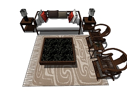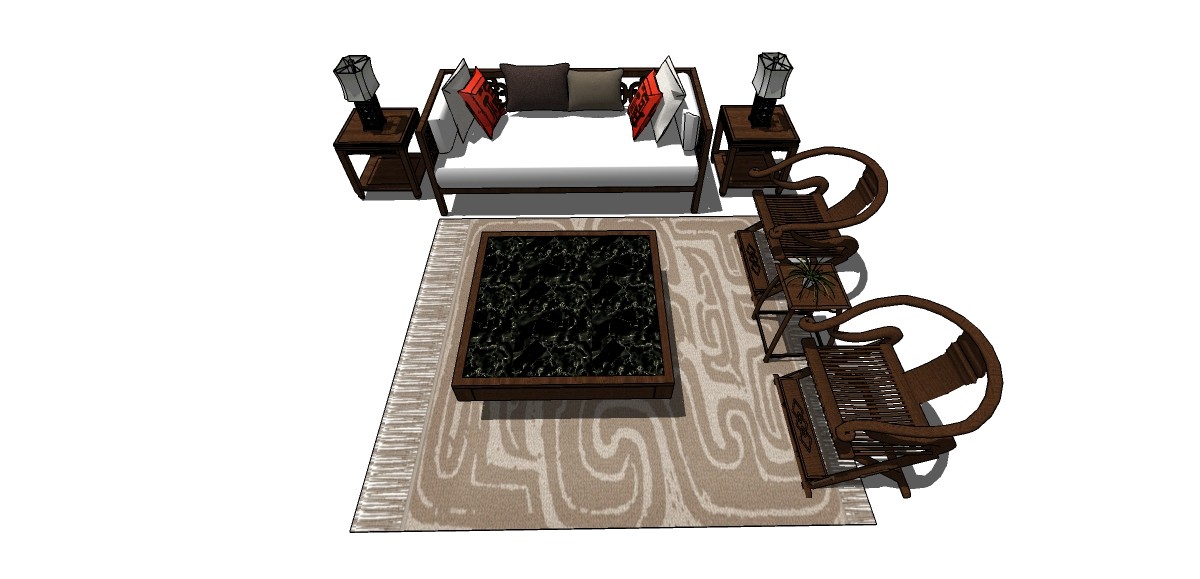 中式多人沙发草图大师模型,多人沙发sketchup模型下载