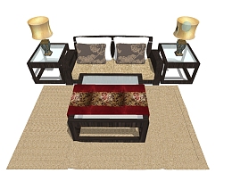 中式多人沙发草图大师模型,多人沙发sketchup模型下载