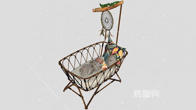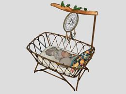 天然巢儿童婴儿床SU模型下载_sketchup草图大师SKP模型