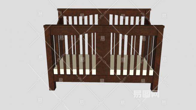 深色木质婴儿床SU模型下载_sketchup草图大师SKP模型