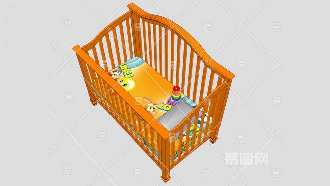板条婴儿床SU模型下载_sketchup草图大师SKP模型