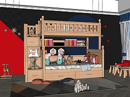 现代上下儿童床,上下铺小猪佩奇玩具su草图模型下载