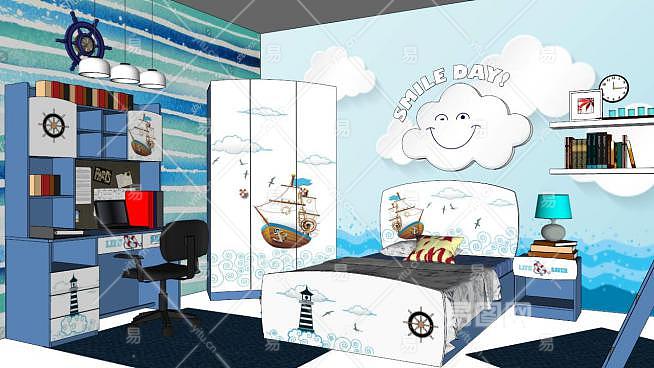 单间儿童房su模型下载_sketchup草图大师SKP模型