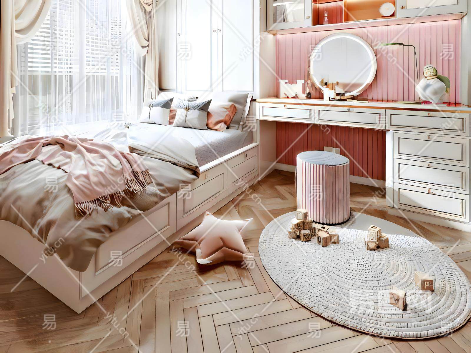 简欧轻奢榻榻米女孩房