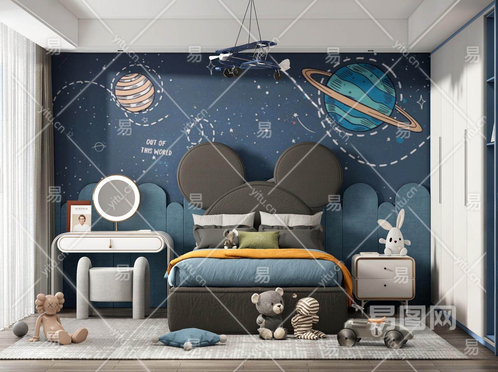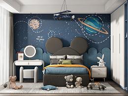 现代儿童房 男孩房 儿子房 床 书桌 玩具 飞机吊灯 衣柜