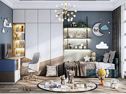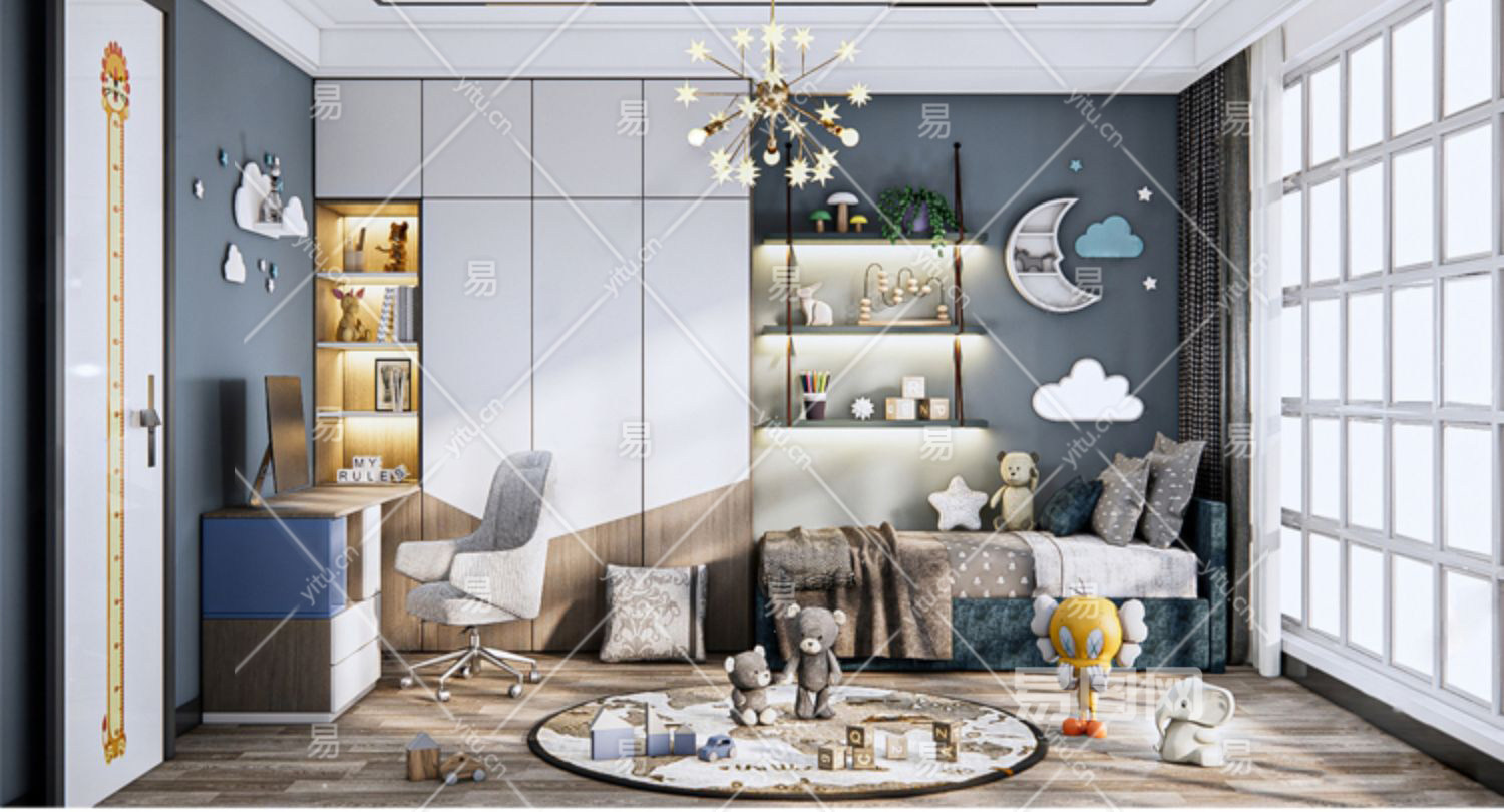 现代儿童房 男孩房 衣柜 书桌椅 玩具 饰品 摆件