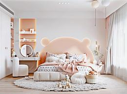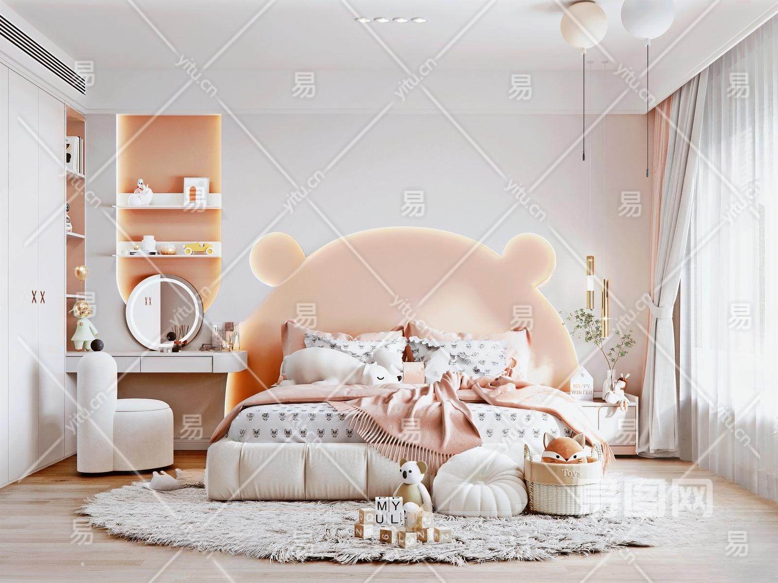 现代女孩房 儿童床 梳妆台