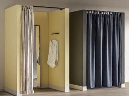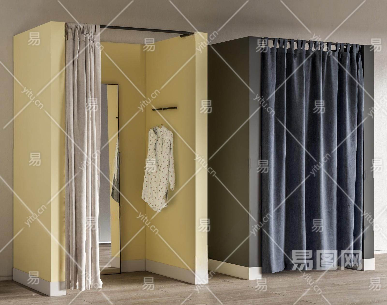 现代服装店试衣间 试衣间布帘拉帘 试衣房 全身镜