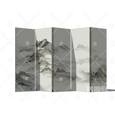 新中式山水画屏风su模型