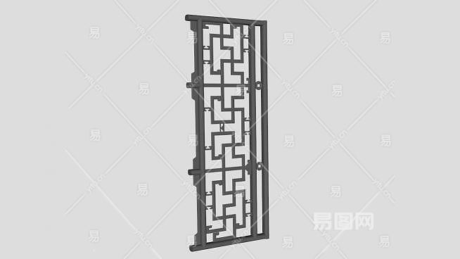 中式时尚办公室隔断SU模型下载_sketchup草图大师SKP模型