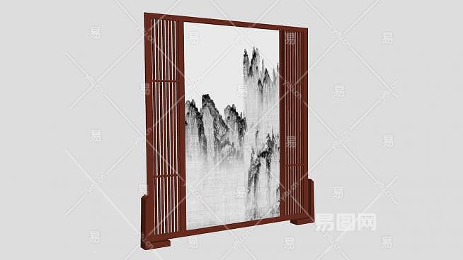 中式水墨风隔断元素SU模型下载_sketchup草图大师SKP模型