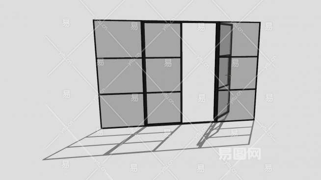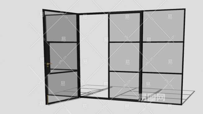 黑框玻璃隔断SU模型下载_sketchup草图大师SKP模型