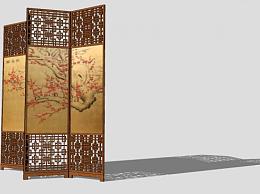 传统梅花图木屏风SU模型下载_sketchup草图大师SKP模型