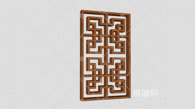 中式窗花隔断屏风SU模型下载_sketchup草图大师SKP模型