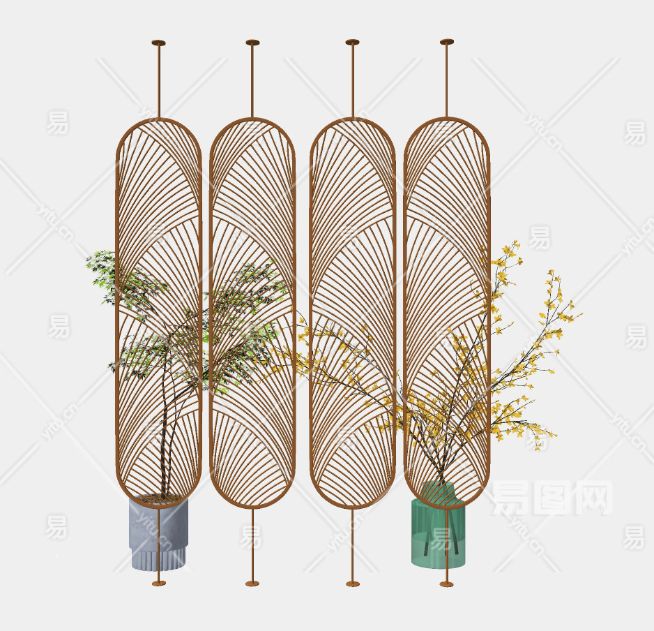 现代金属铁艺隔断su草图模型下载