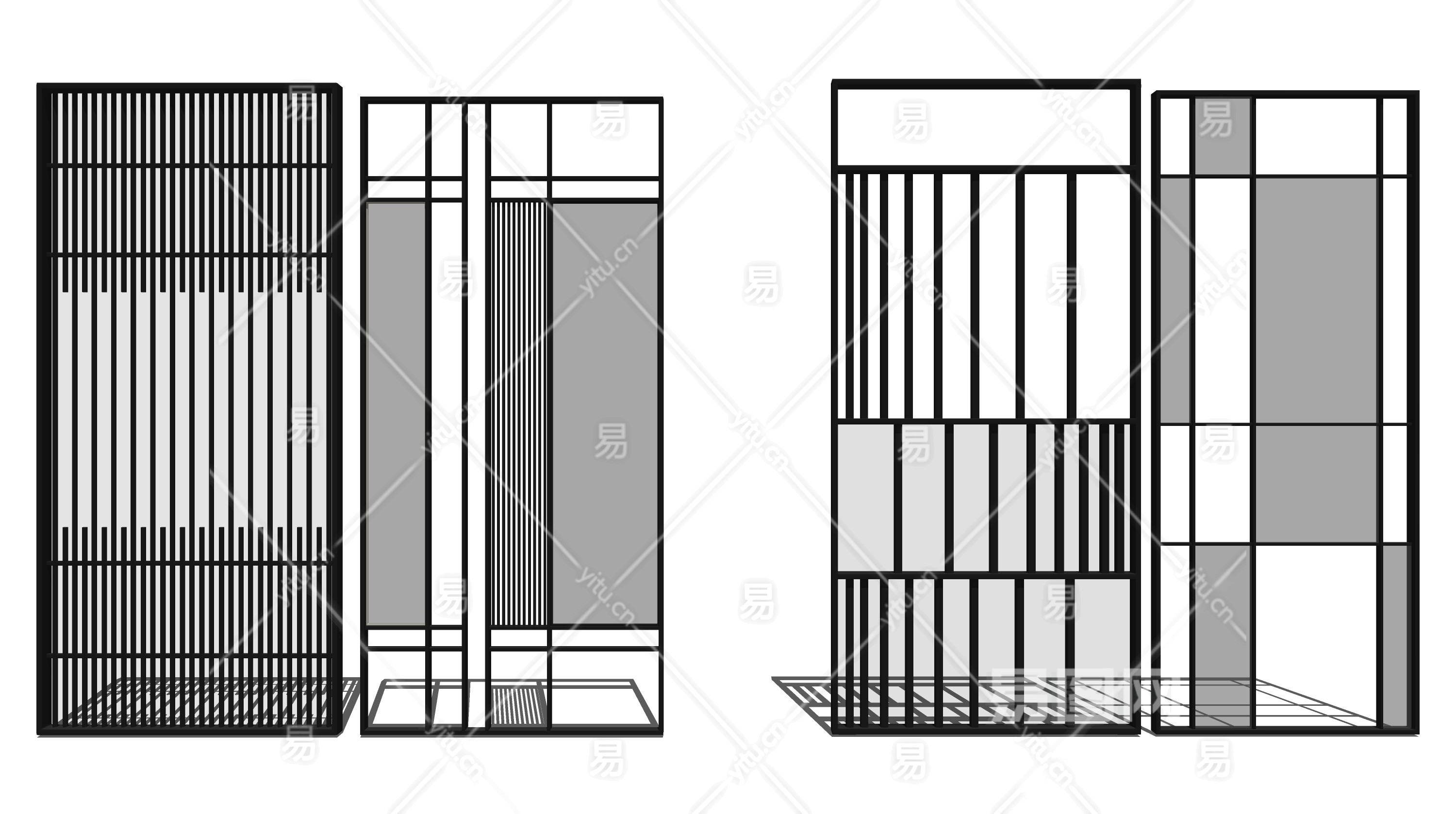 现代简约隔断su草图模型下载