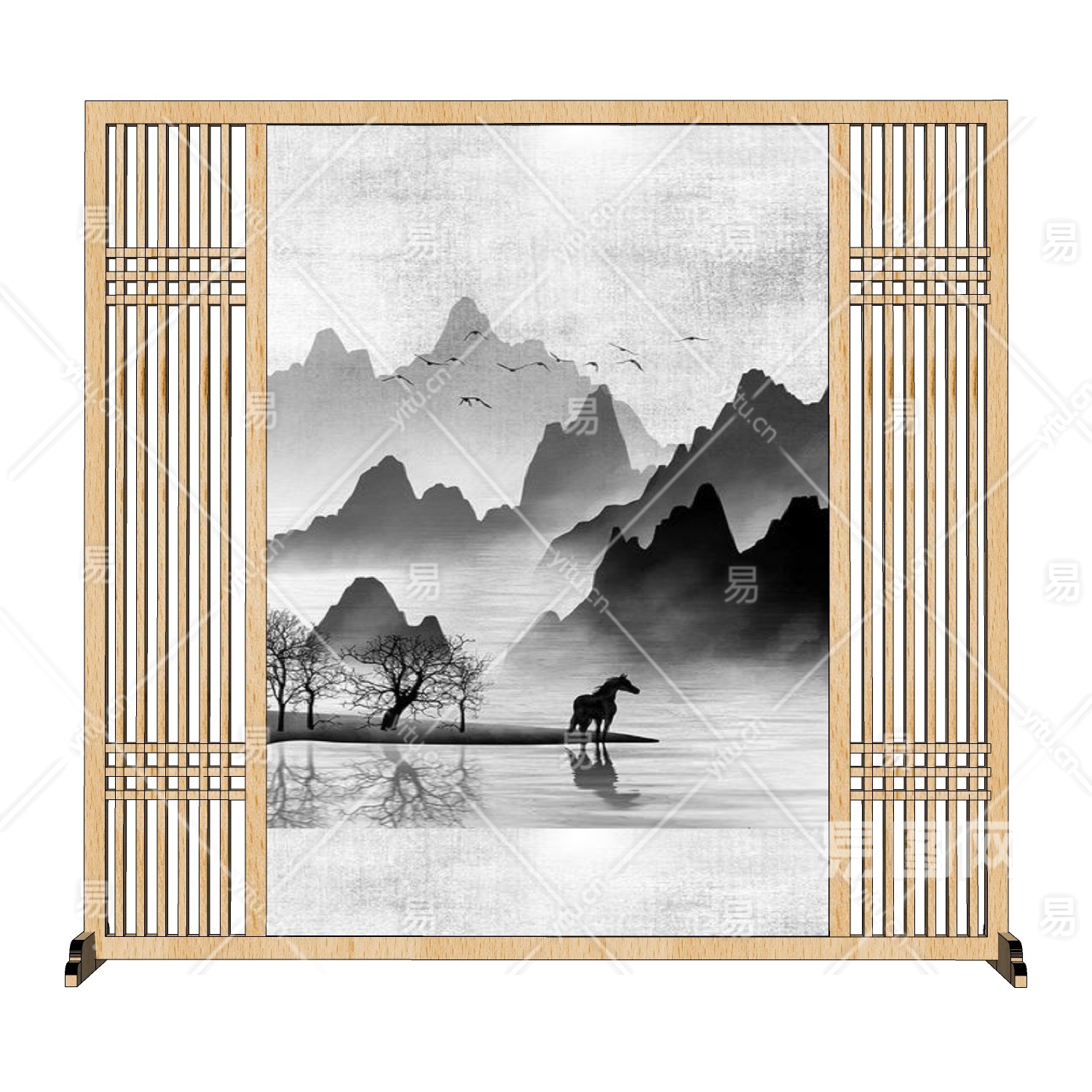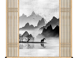 中国风山水水墨画屏风