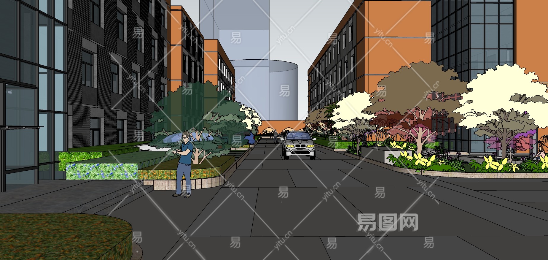 196现代工厂 工业风格厂房改造,艺术园区,创意文化产业园 现代办公楼厂房 孵化器产业中心su草图模型下载