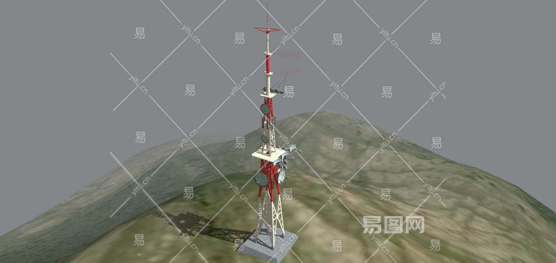15信号塔 雷达站 电信塔 高山上电讯站su草图模型下载