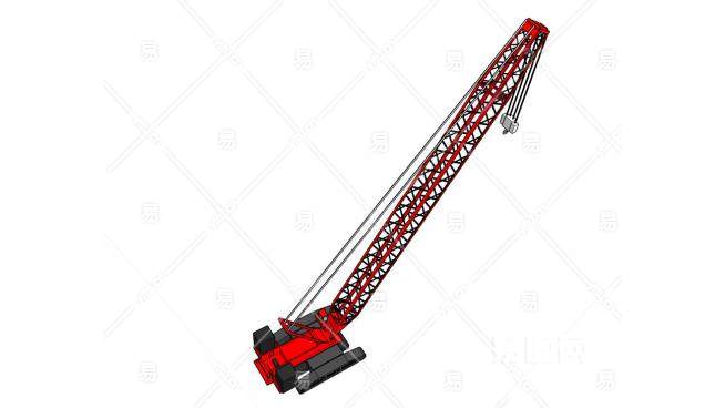 履带式红色工业起重机SU模型下载_sketchup草图大师SKP模型