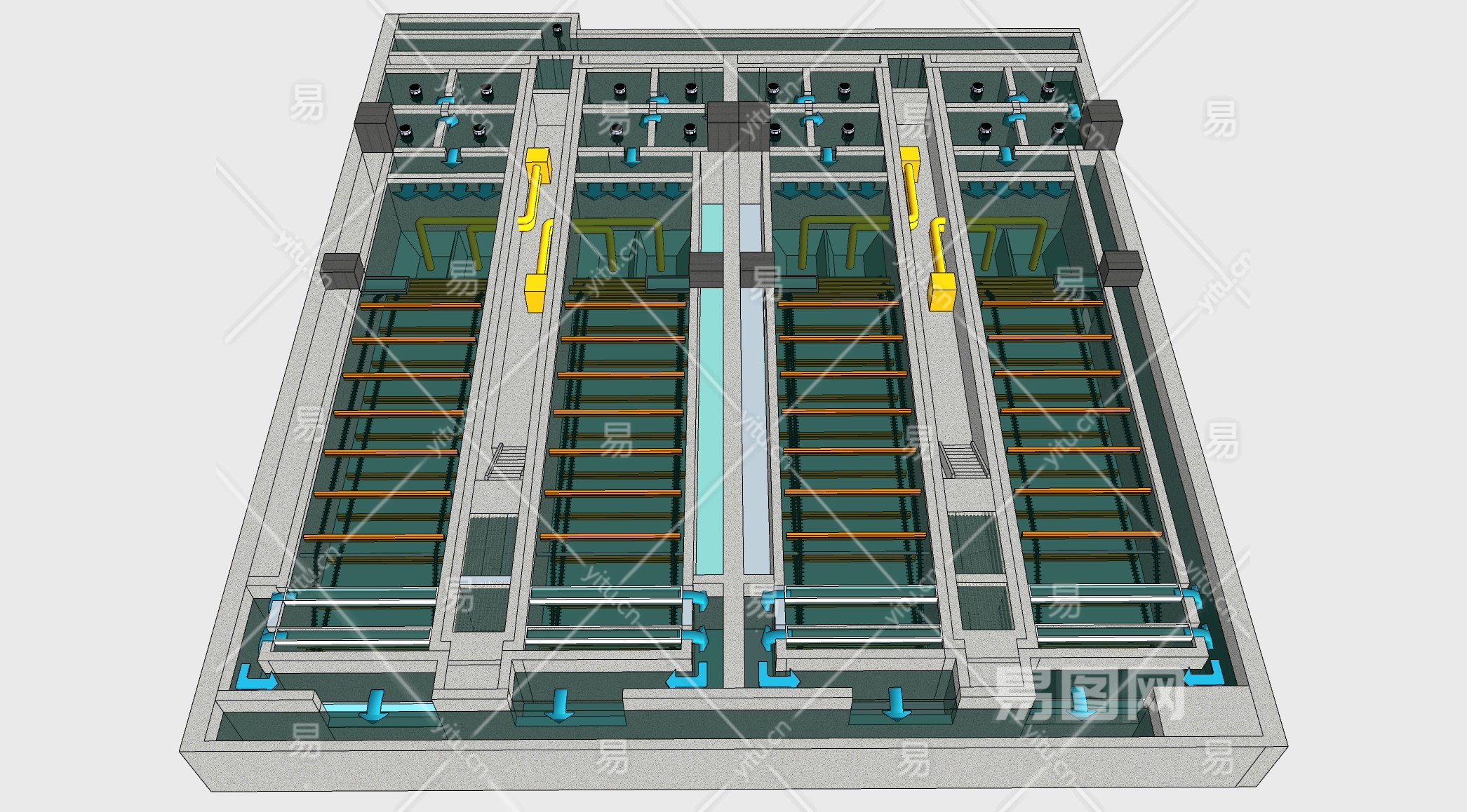 自来水厂供水设备机房 su草图模型下载