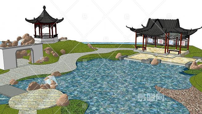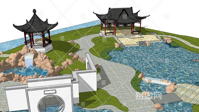 新中式公园su模型下载_sketchup草图大师SKP模型