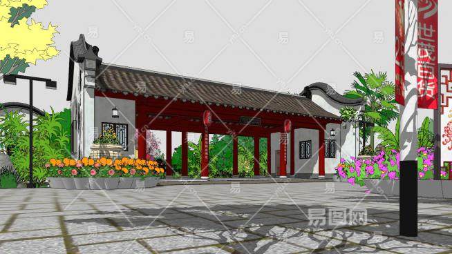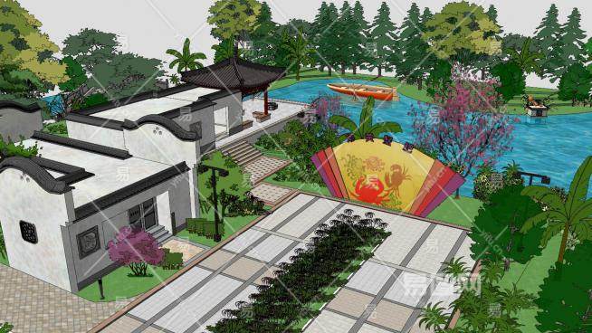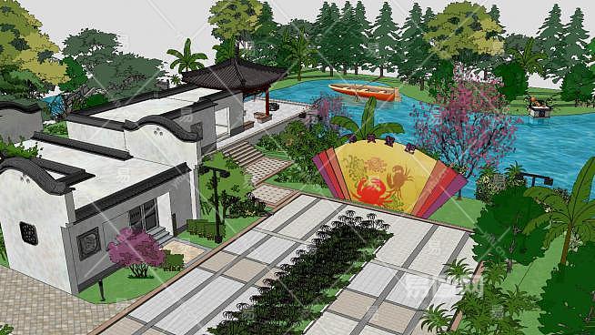 中式建设公园规划SU模型下载_sketchup草图大师SKP模型