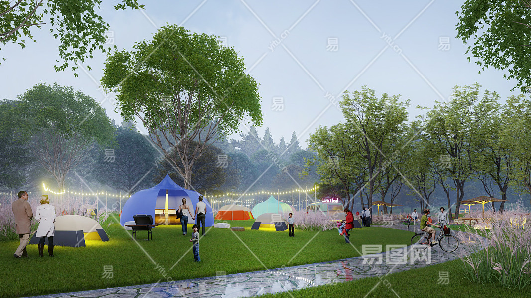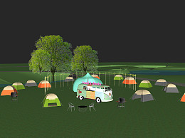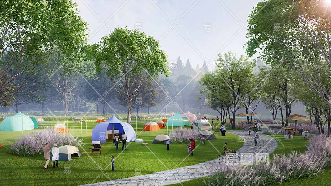 现代公园帐篷露营娱乐区 房车营地 户外外摆区