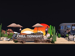 沙漠露营基地 仙人掌露营设施 落日美陈 太阳网红打卡点 快餐车