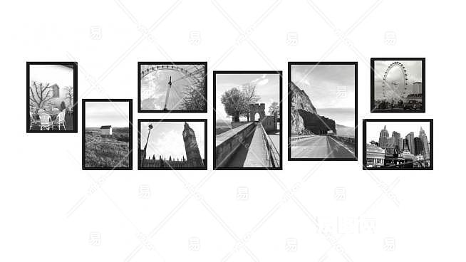 黑白摄影照片墙SU模型下载_sketchup草图大师SKP模型